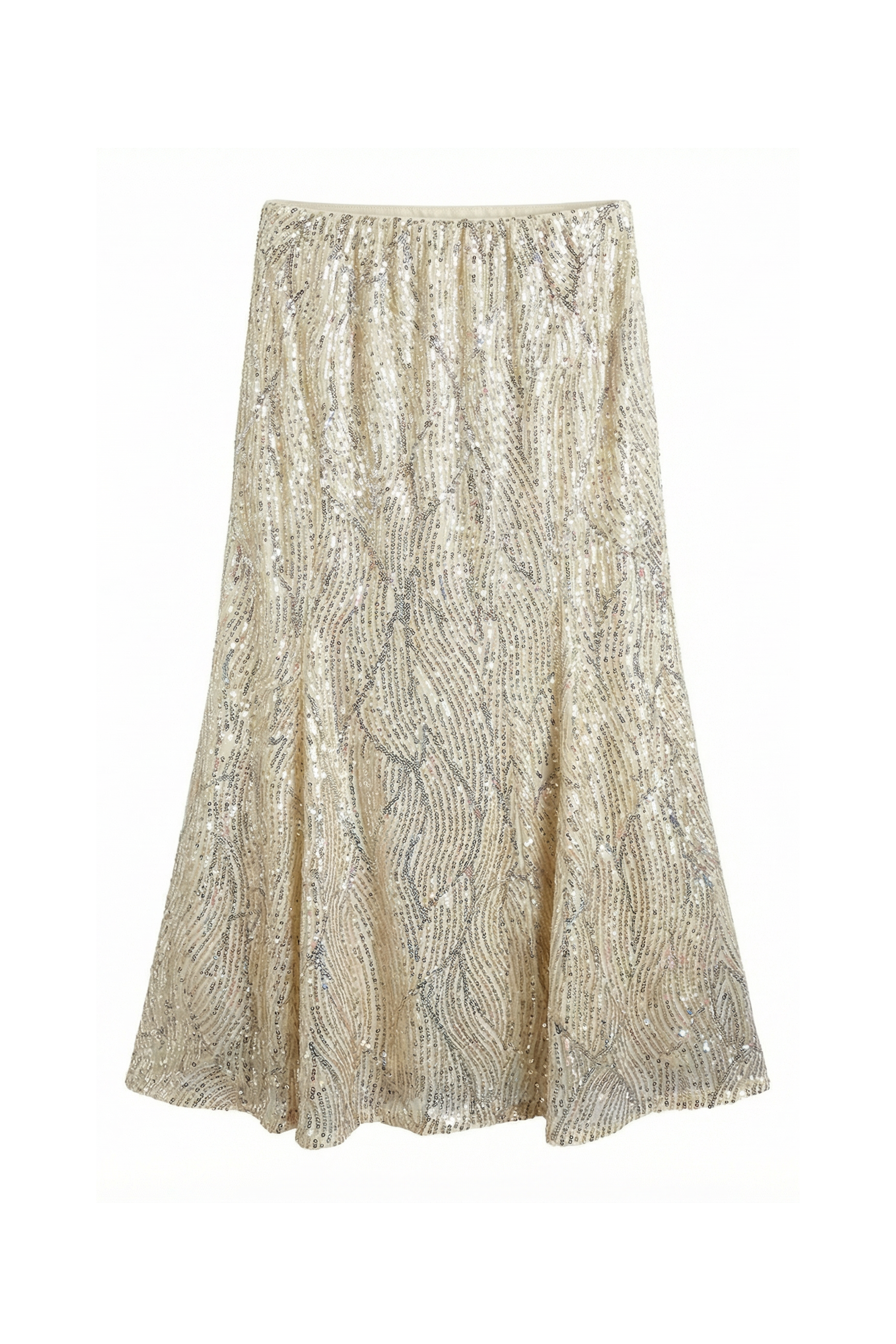 Questa è una gonna lunga (midi), molto elegante e appariscente, perfetta per eventi serali o feste.