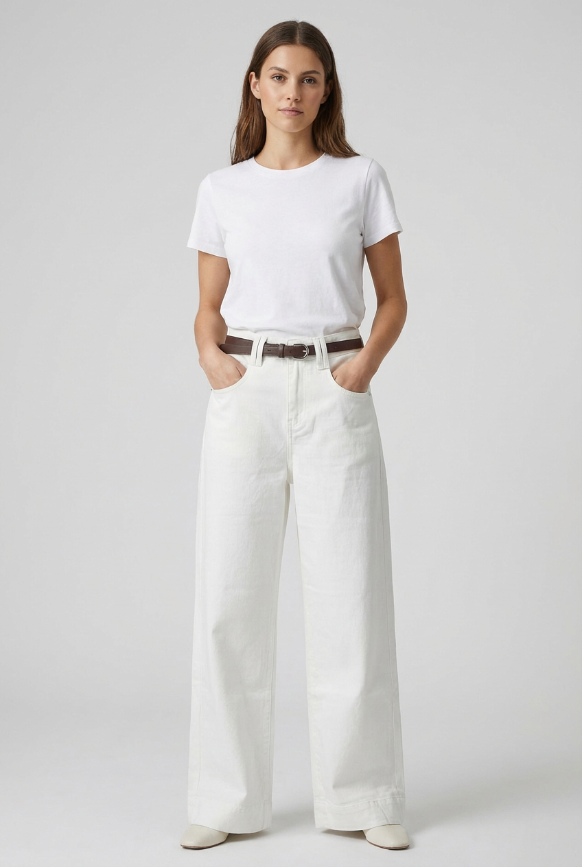 Fit: Gamba larga (wide-leg) con caduta fluida.