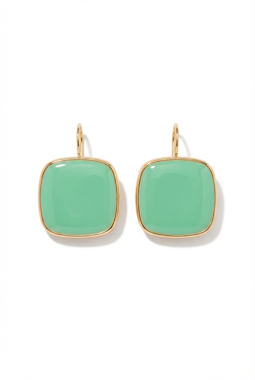 Aggiungi un tocco di colore vibrante e sofisticato al tuo look quotidiano con questi splendidi orecchini. Caratterizzati da un design geometrico a cuscino, fondono perfettamente un’anima retrò con linee moderne e pulite.