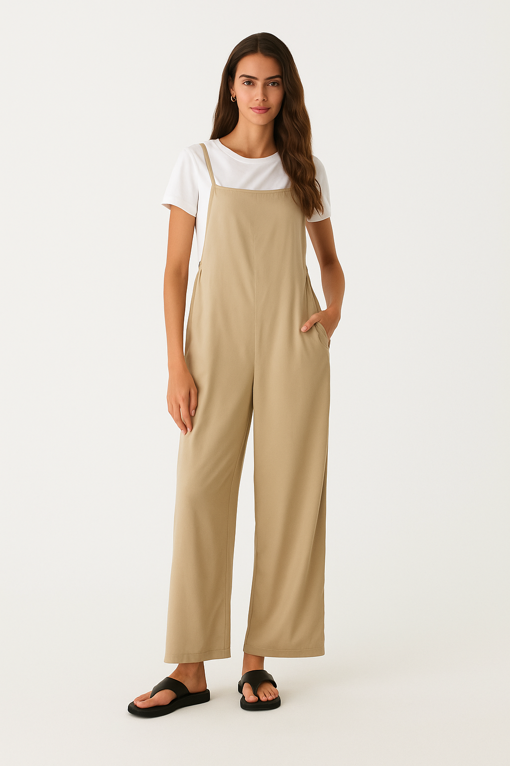 Salopette in viscosa con panta palazzo, t-shirt compresa.